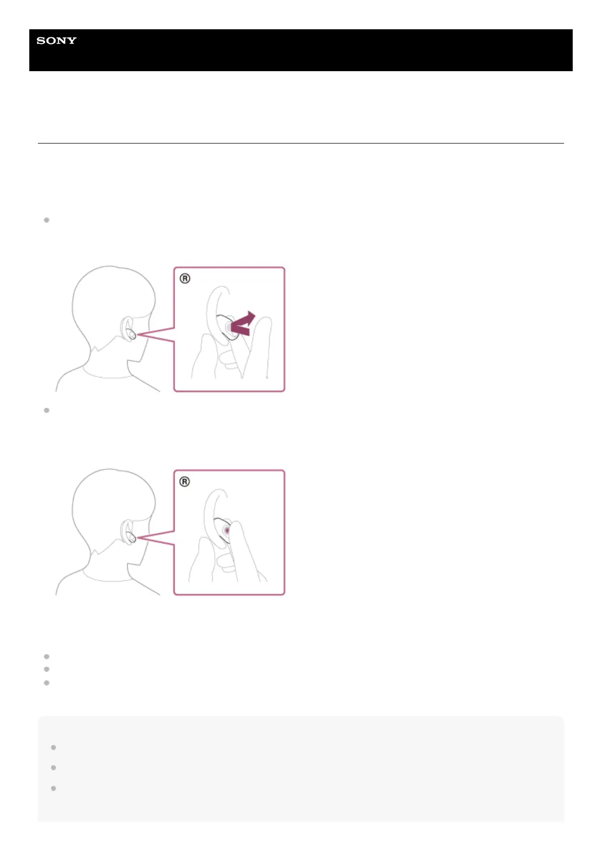 Lower the volume: Hold your finger to the touch sensor on the right headset unit during music playback to lower the