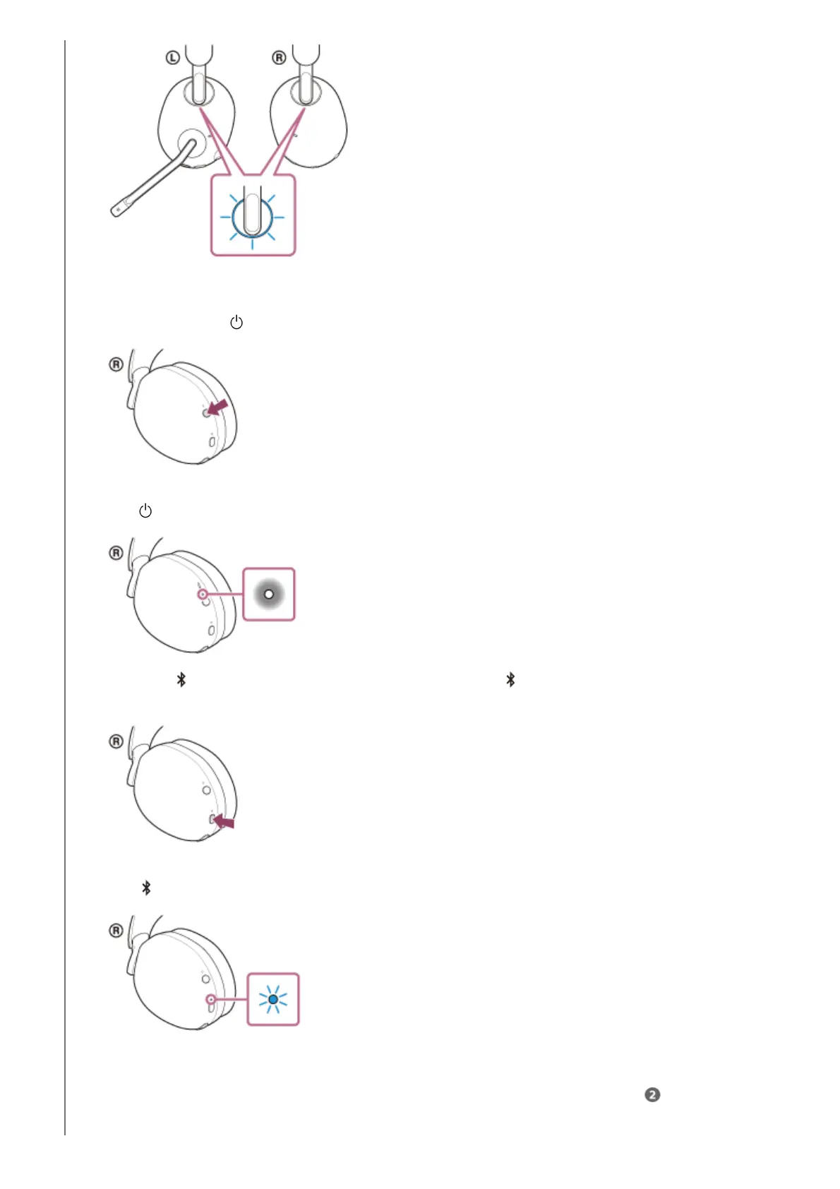 Press and hold the (power) button for about 2 seconds or more to turn on the headset.