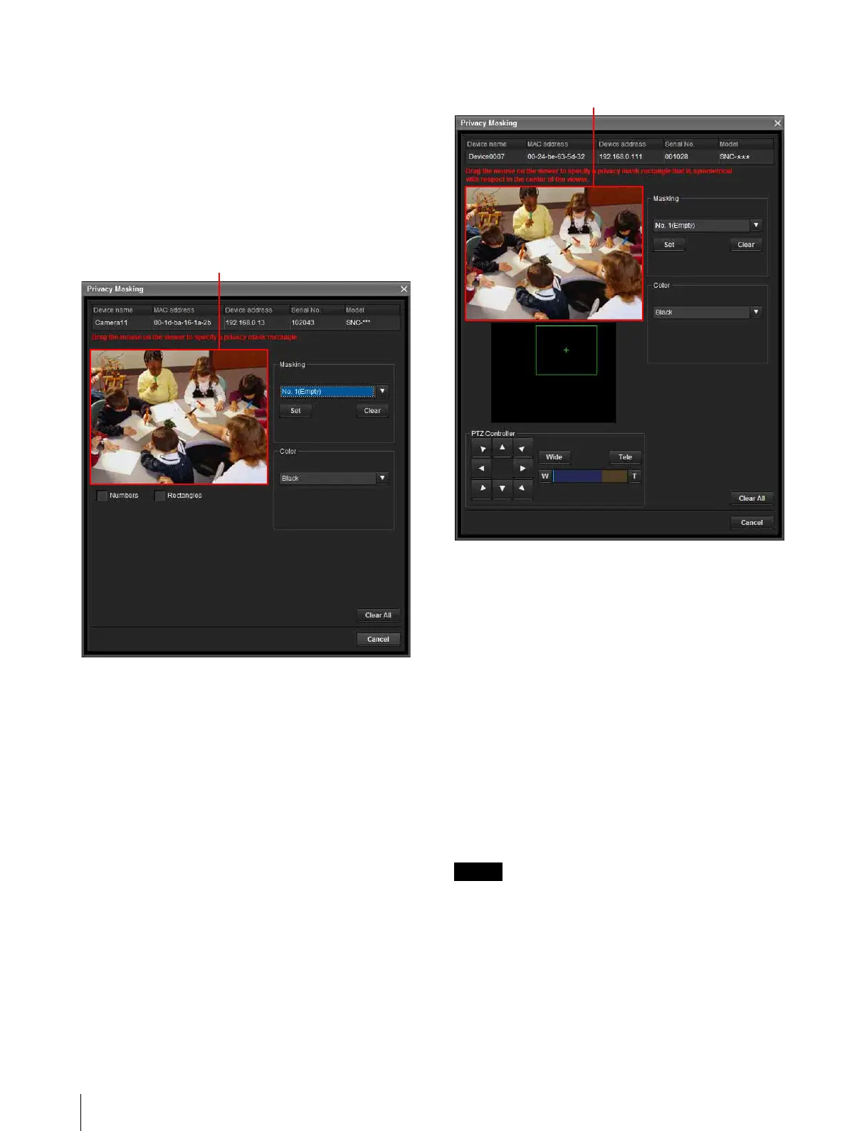 Click Masking to display the Privacy Masking screen.