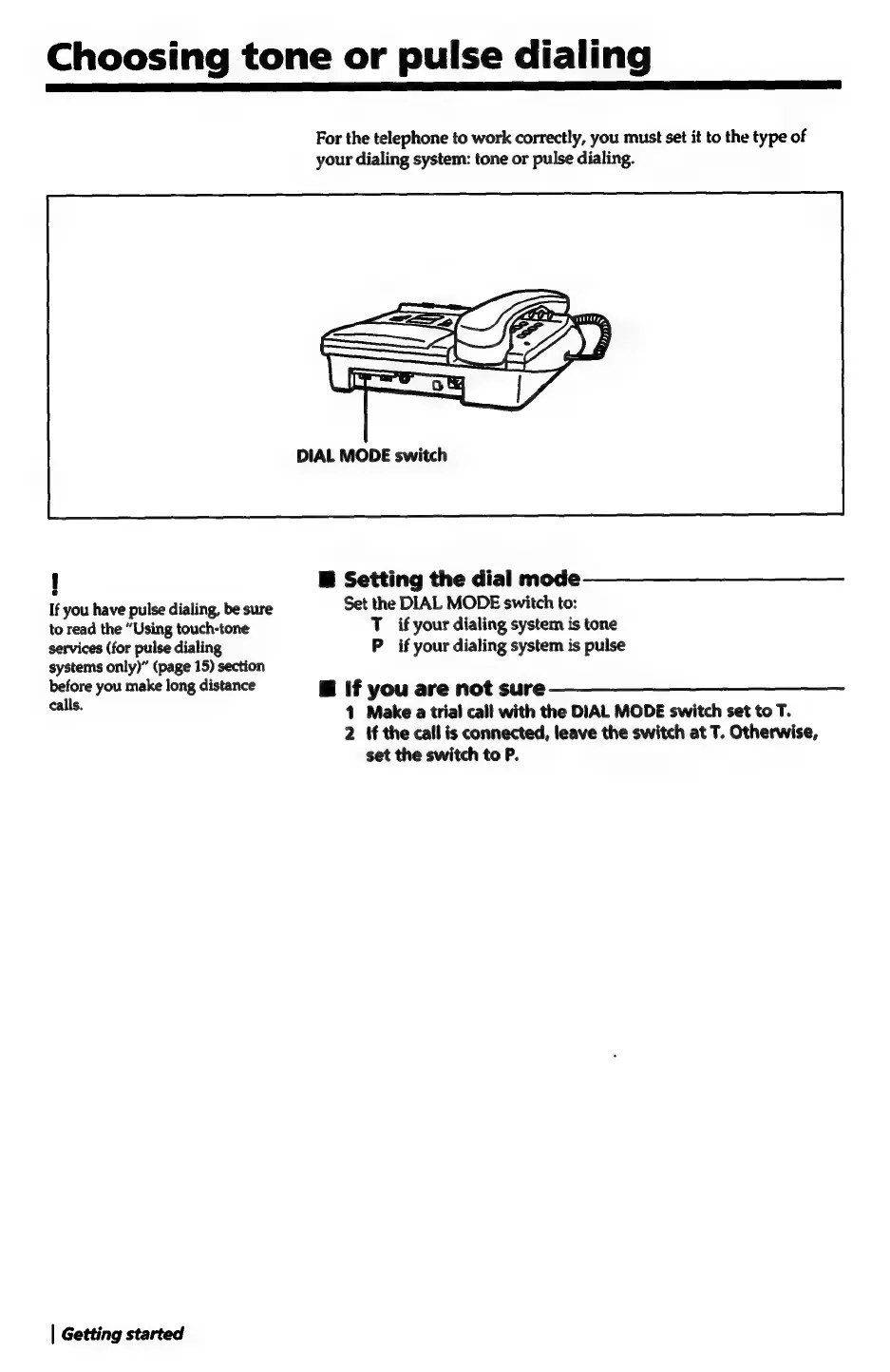 Sony IT-A100 - Choosing Tone or Pulse Dialing