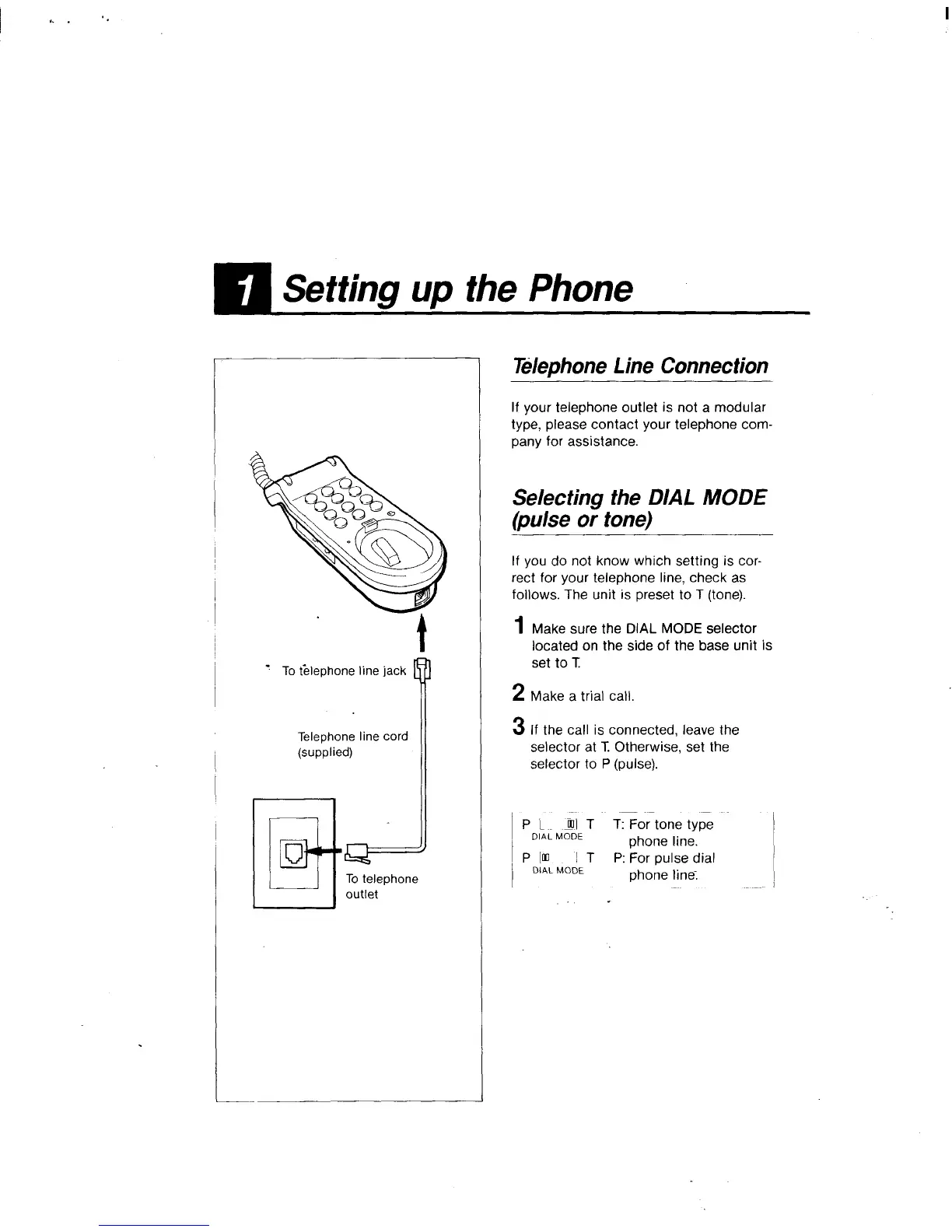 Sony IT-B3 - Setting up the Phone; Telephone Line Connection; Selecting Dial Mode