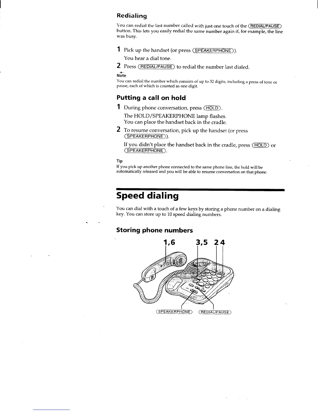 Sony IT-B9 - Advanced Features; Redialing; Call Hold
