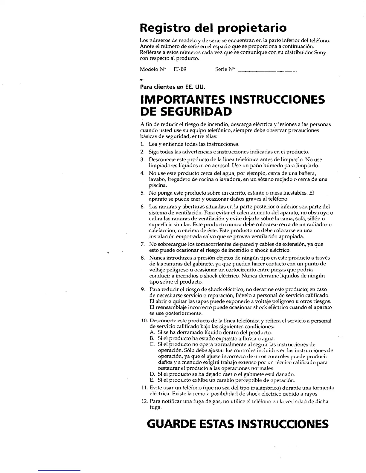 Other manuals for Sony IT-B9