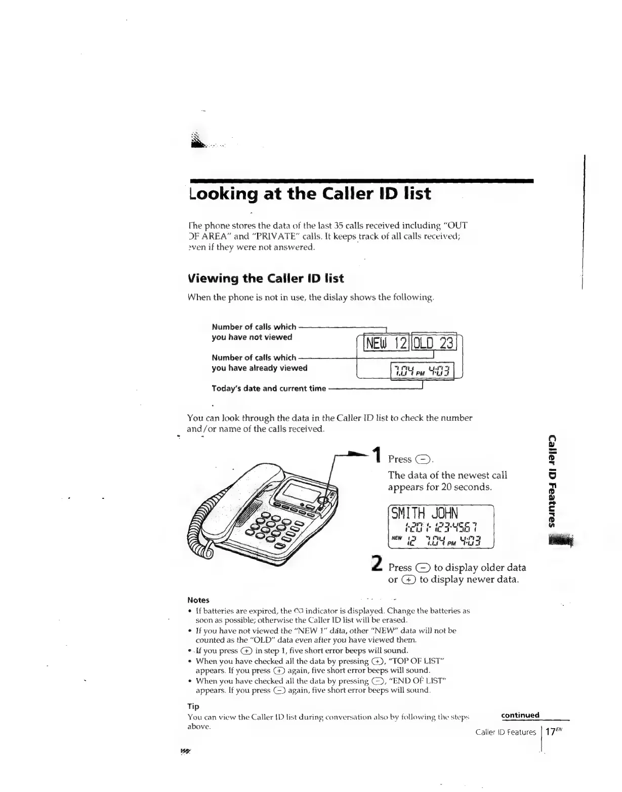 Sony IT-ID80 - Viewing and Navigating the Caller ID List