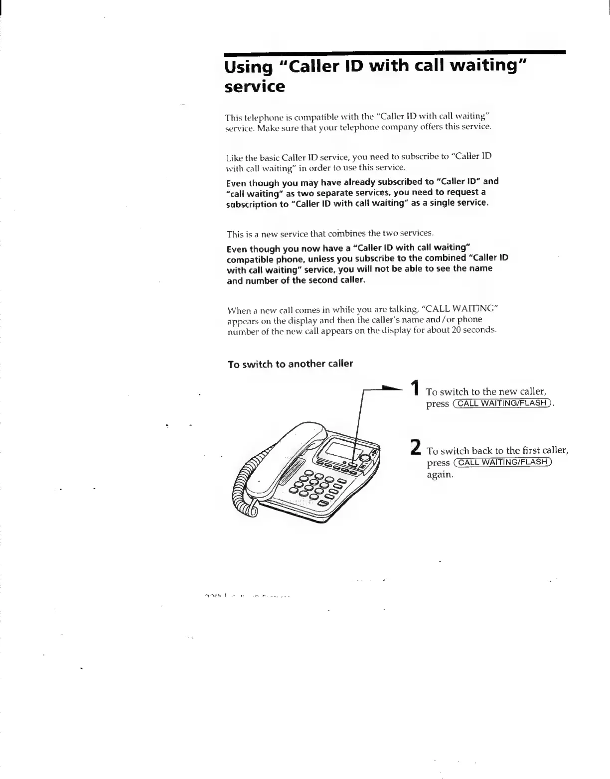 Sony IT-ID80 - Using Caller ID with Call Waiting Service; Switching Between Callers