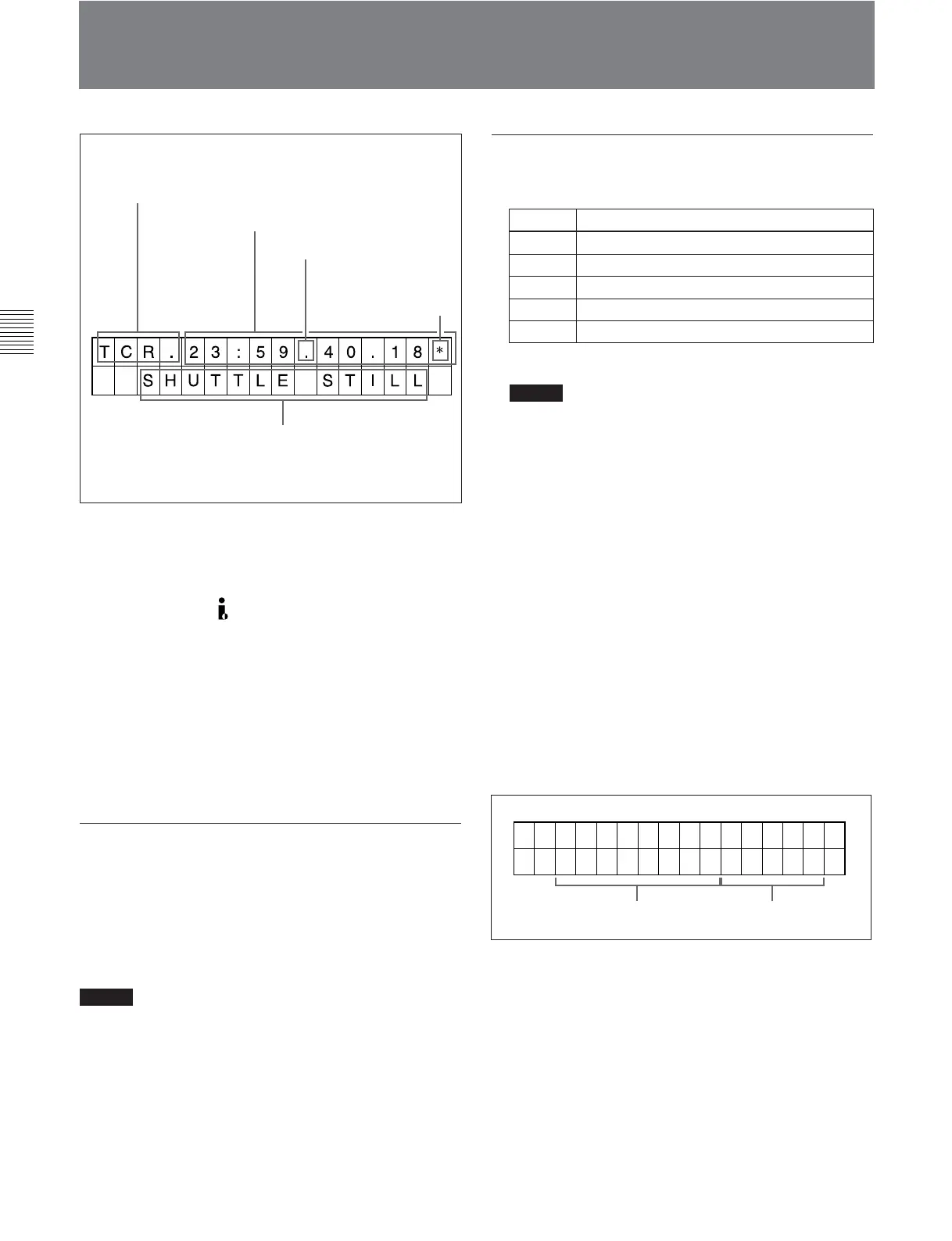 イムコード、メニュー設定、アラームメッセージなどの文字情報を