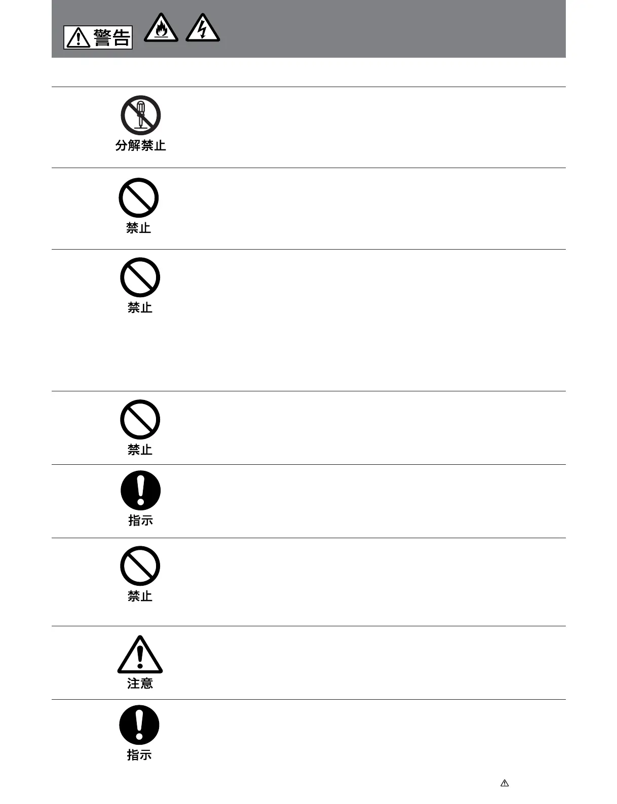 機器に表示されたものと異なる電源電圧で使用すると、火災や感電の原因と