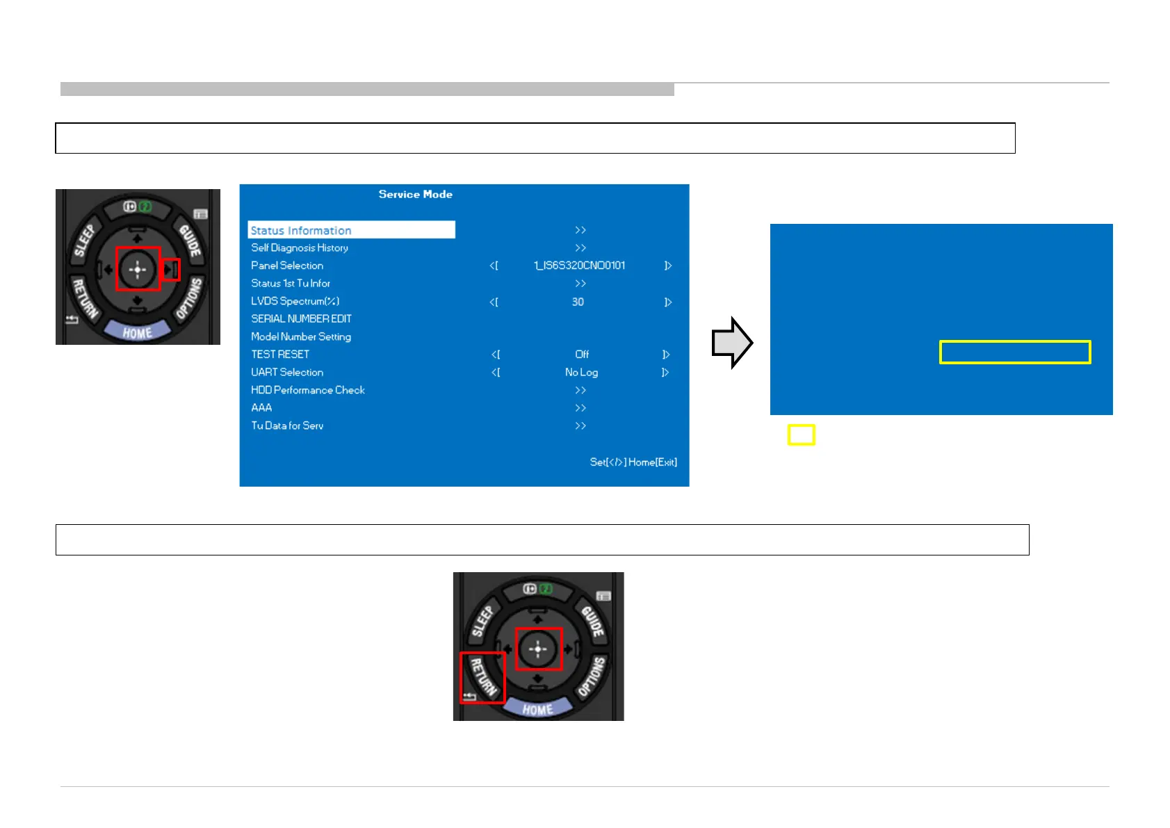 2) Press “Enter” or “Return” button to return to Service Mode