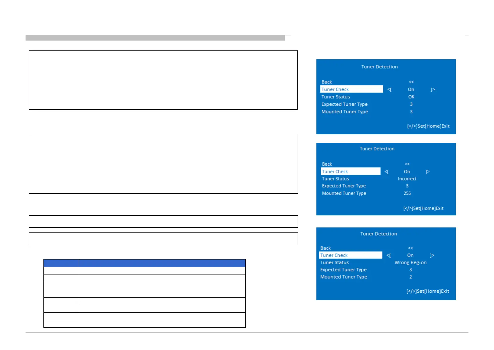 • “Tuner Check” = On , to execute “Tuner Check” and update “Tuner Status”