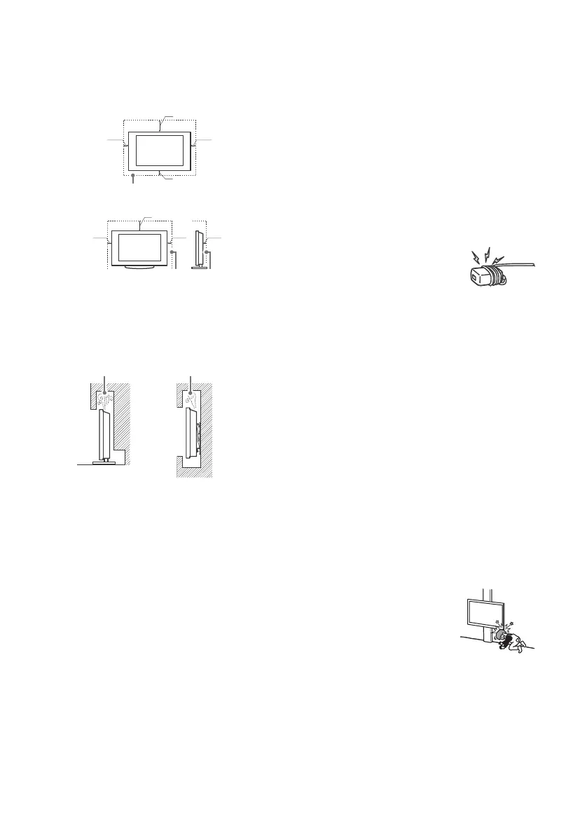 • Leave space around the TV set as shown below.