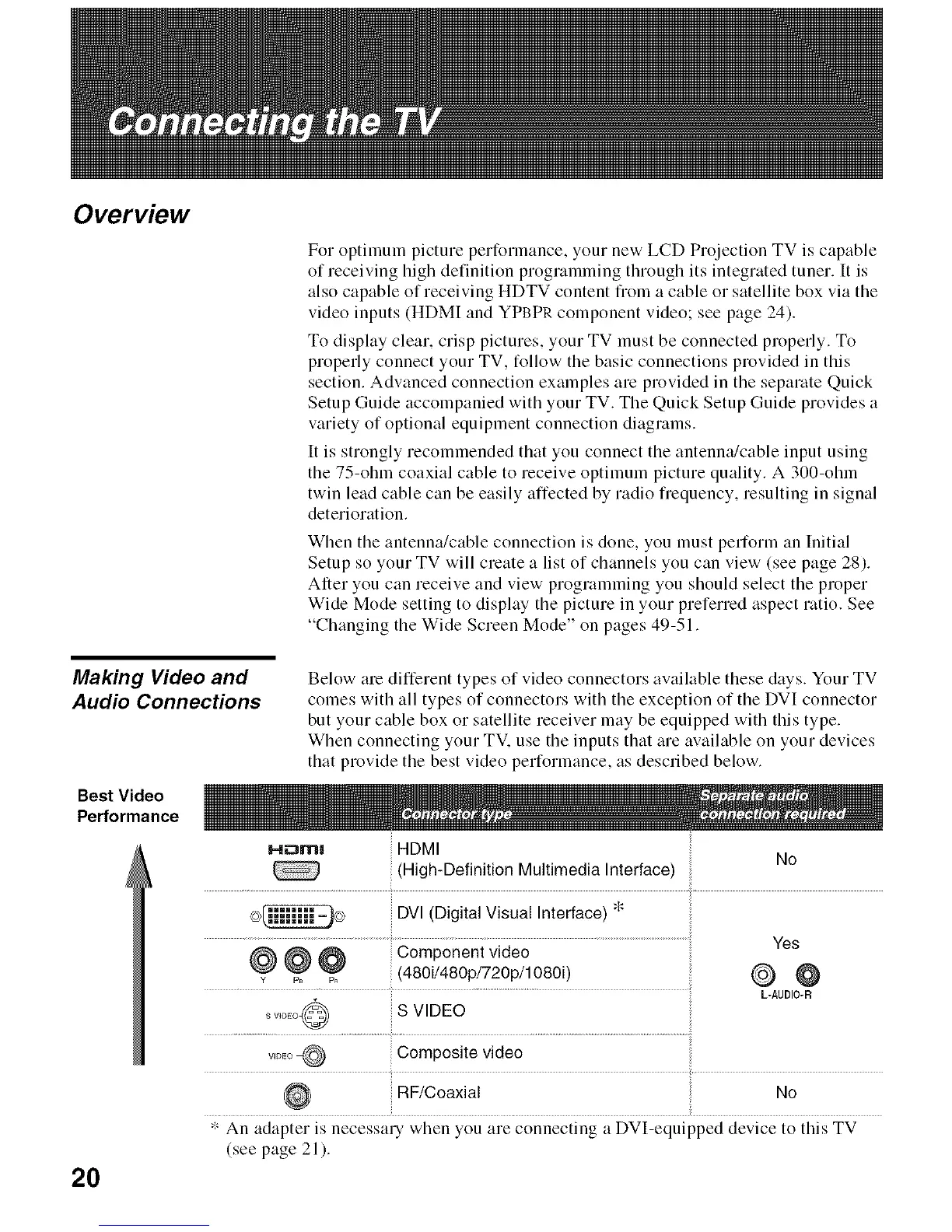 * An adapter is necessary when you are connecting a DVl-equipped device to this TV
