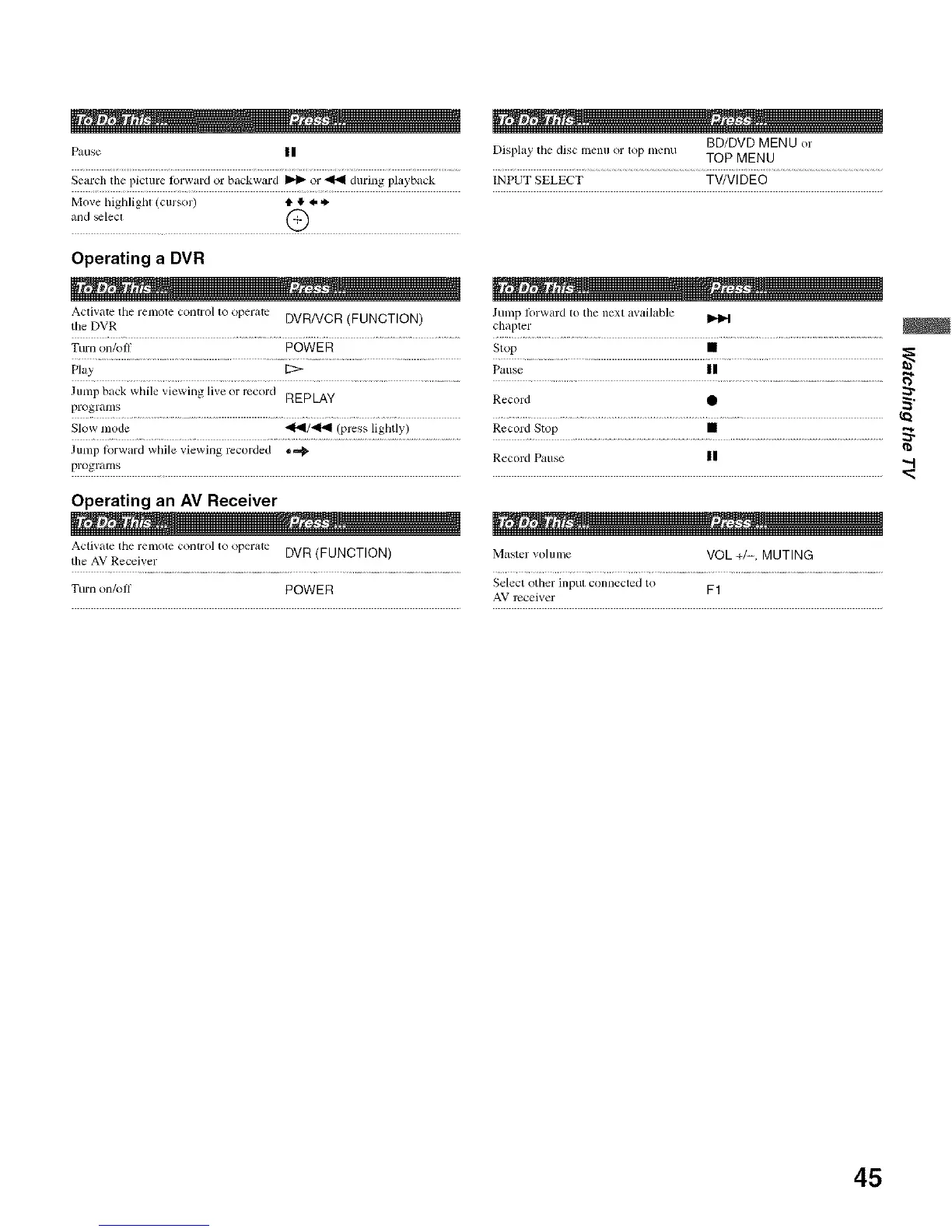 Activate the remote control to operate DVR/VCR (FUNCTION) Jump Iorward to the next available