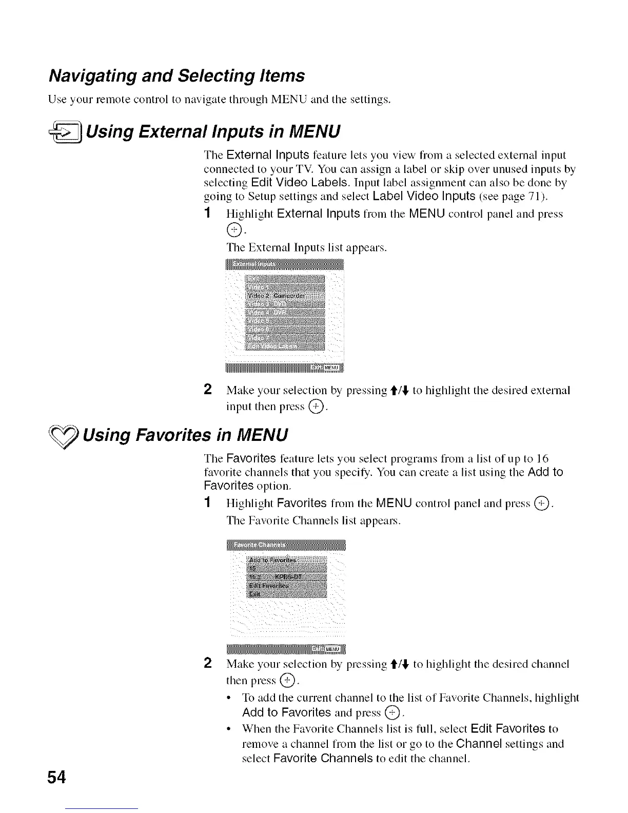 1 Highlight Favorites from the MENU control panel and press @.