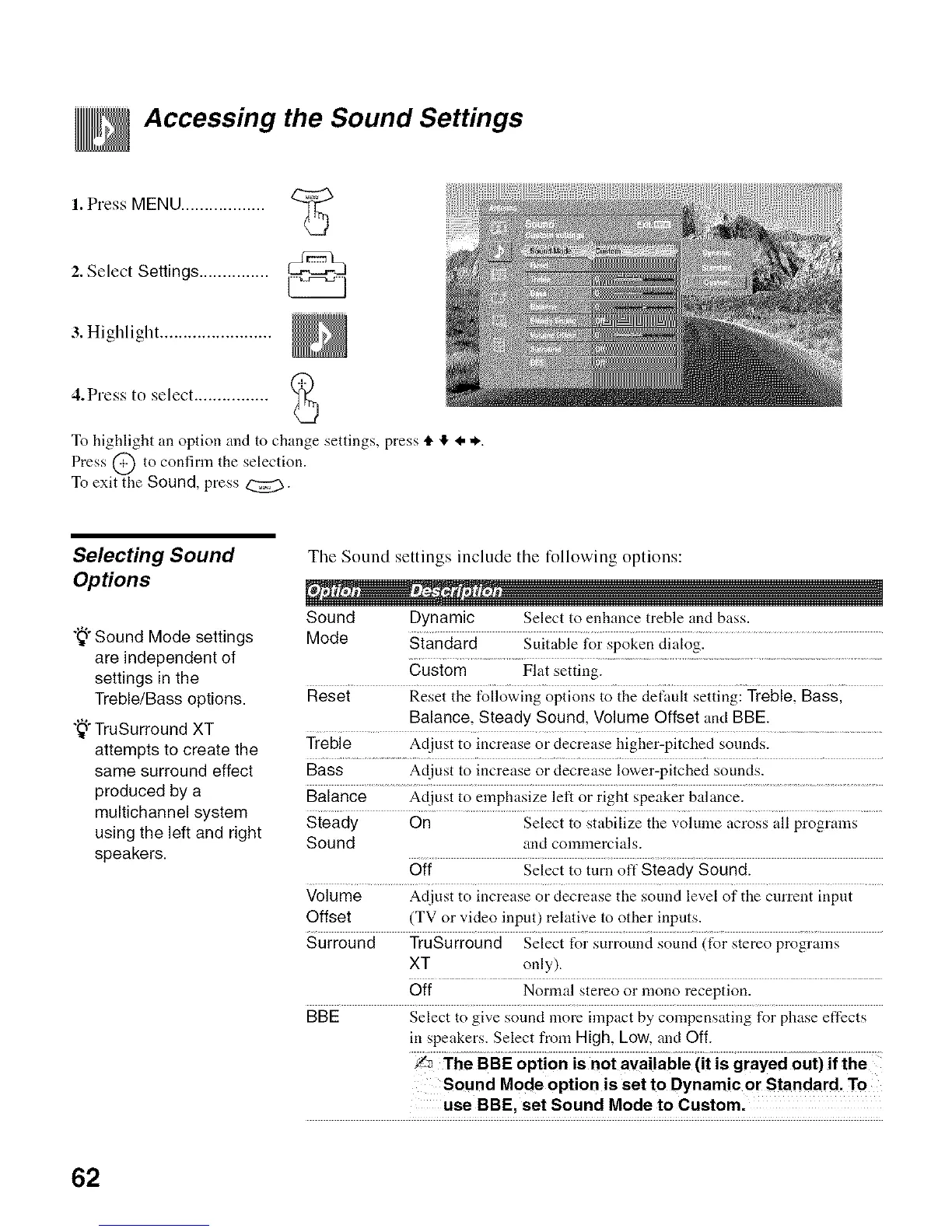 Sound Dynamic Select to enhance treble and bass.