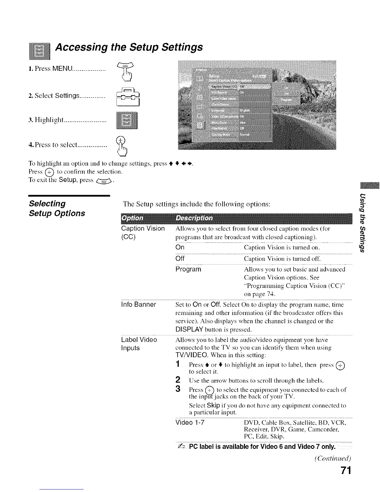Caption Vision Allows you to select from four closed caption modes (for