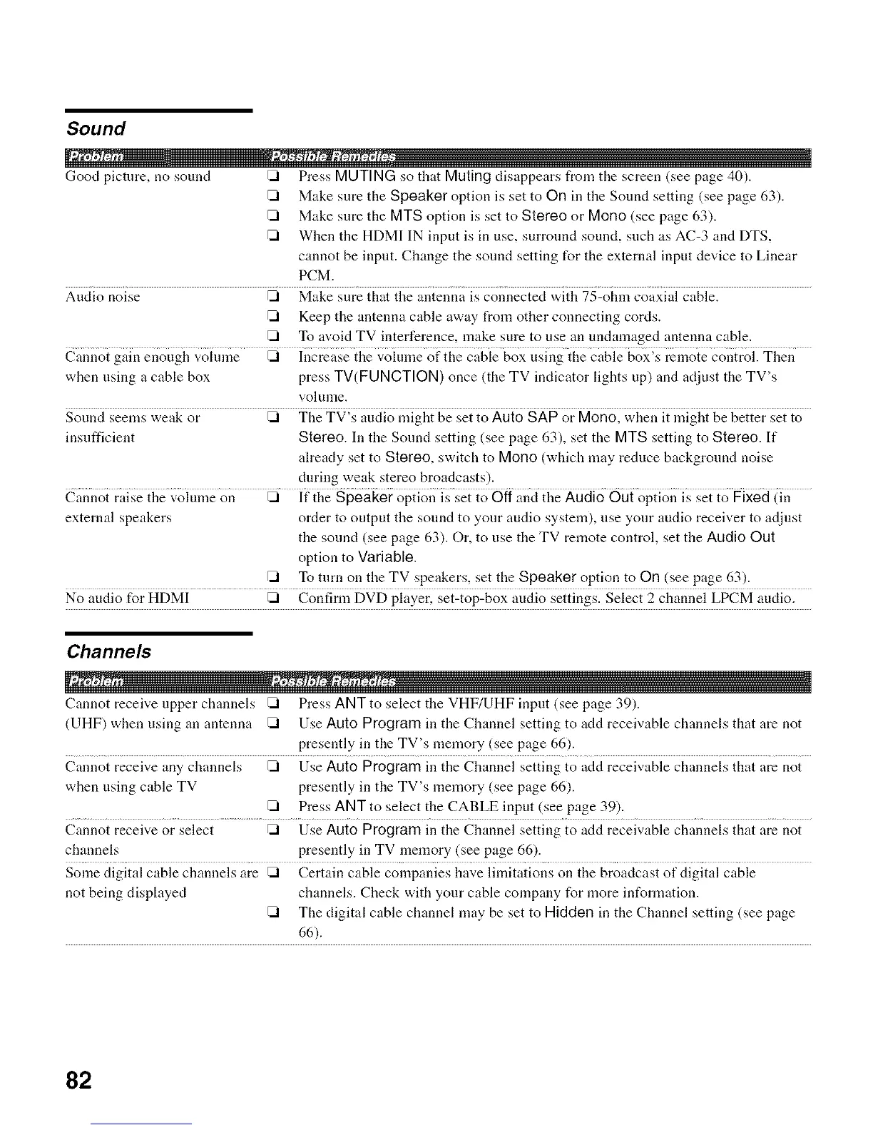 Cannot receive any channels 7j Use Auto Program in the Channel setting to add receivable channels that are not
