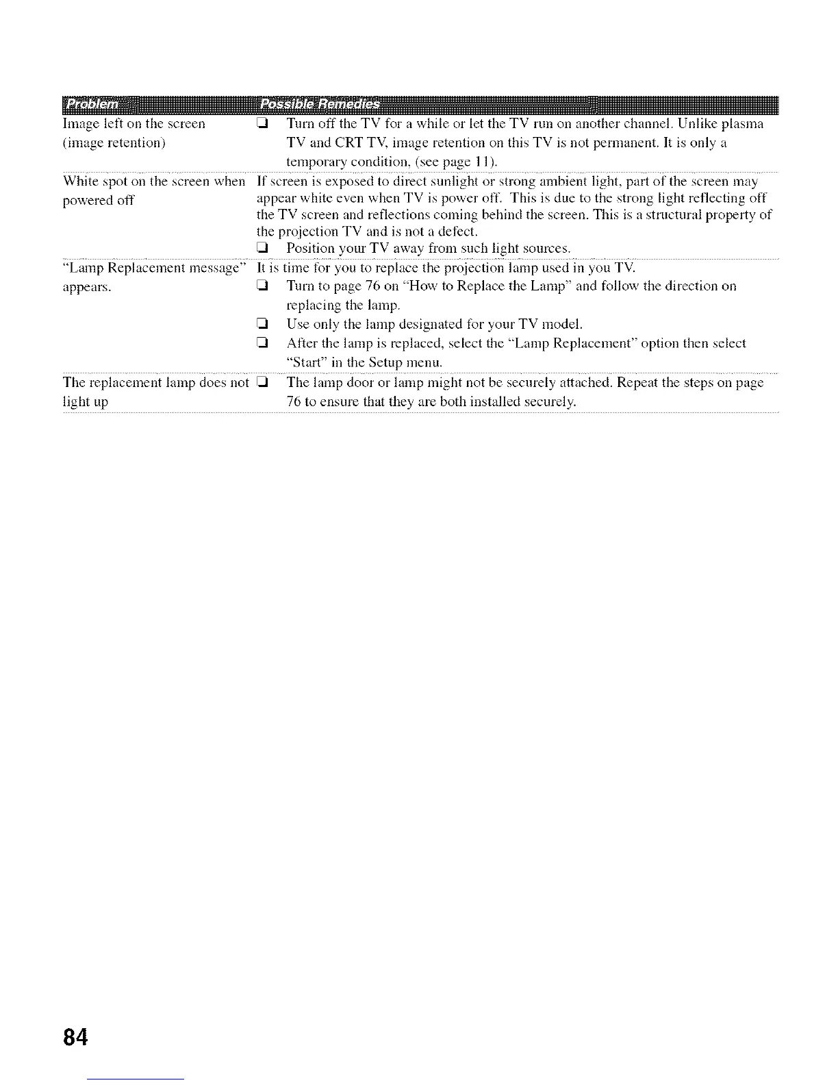 appears. [_ Turn to page 76 on "How to Replace the Lamp" and follow the direction on
