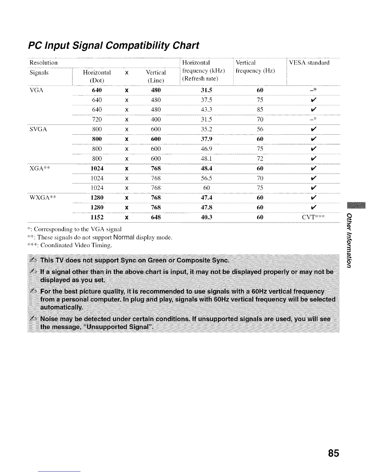 Signals ................................ Horizontal .....x Vertical frequency (kHz) frequency (Hz)