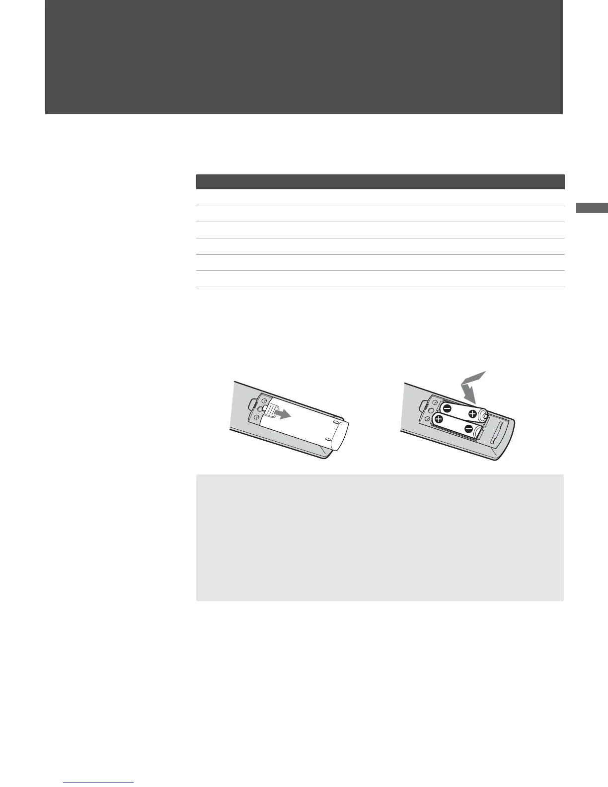 Insert two size AA (R6) batteries (supplied) by matching the e and E on