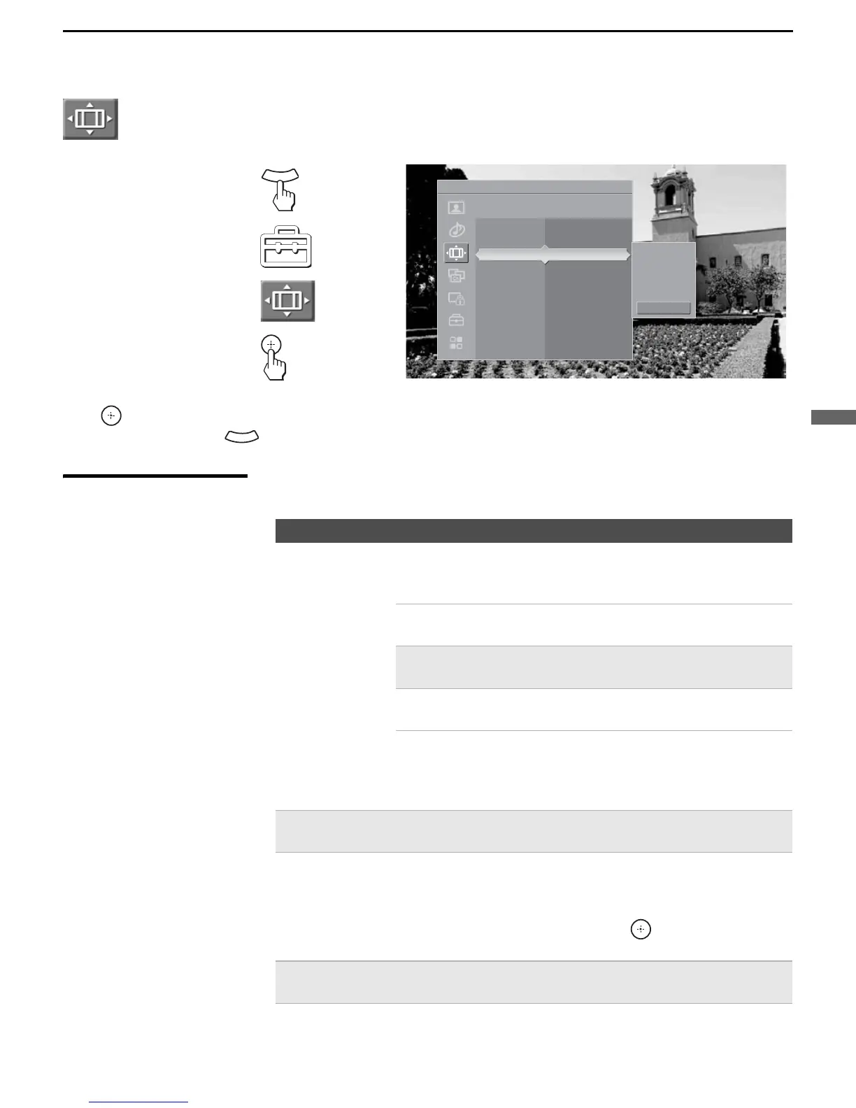 Wide Zoom Select to enlarge the 4:3 picture, to fill the 16:9