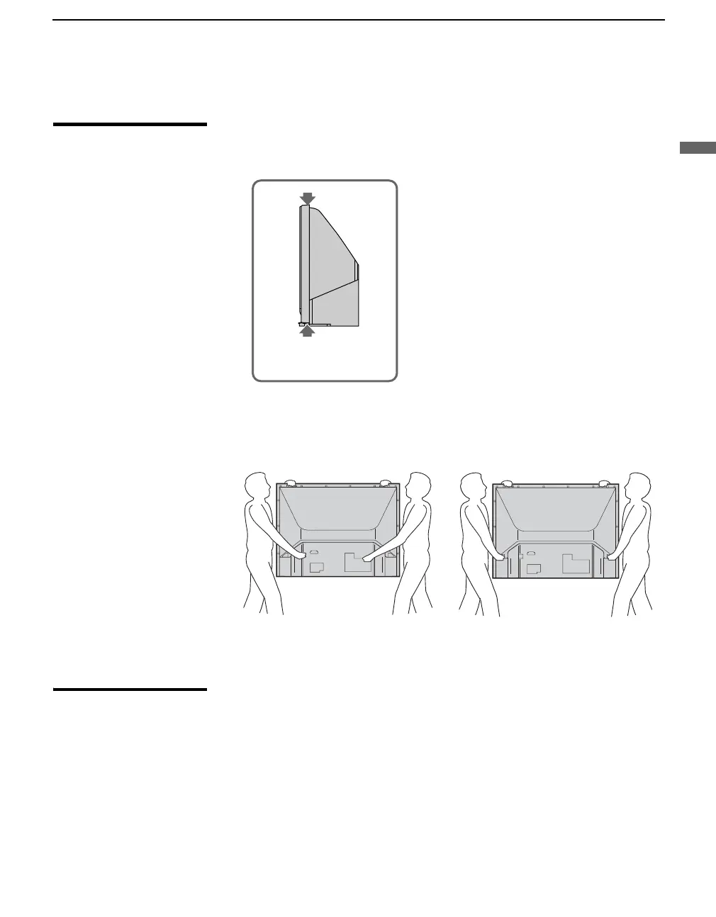 Carrying Your TV Carrying the TV requires at least two people. Do not hold by the pedestal or