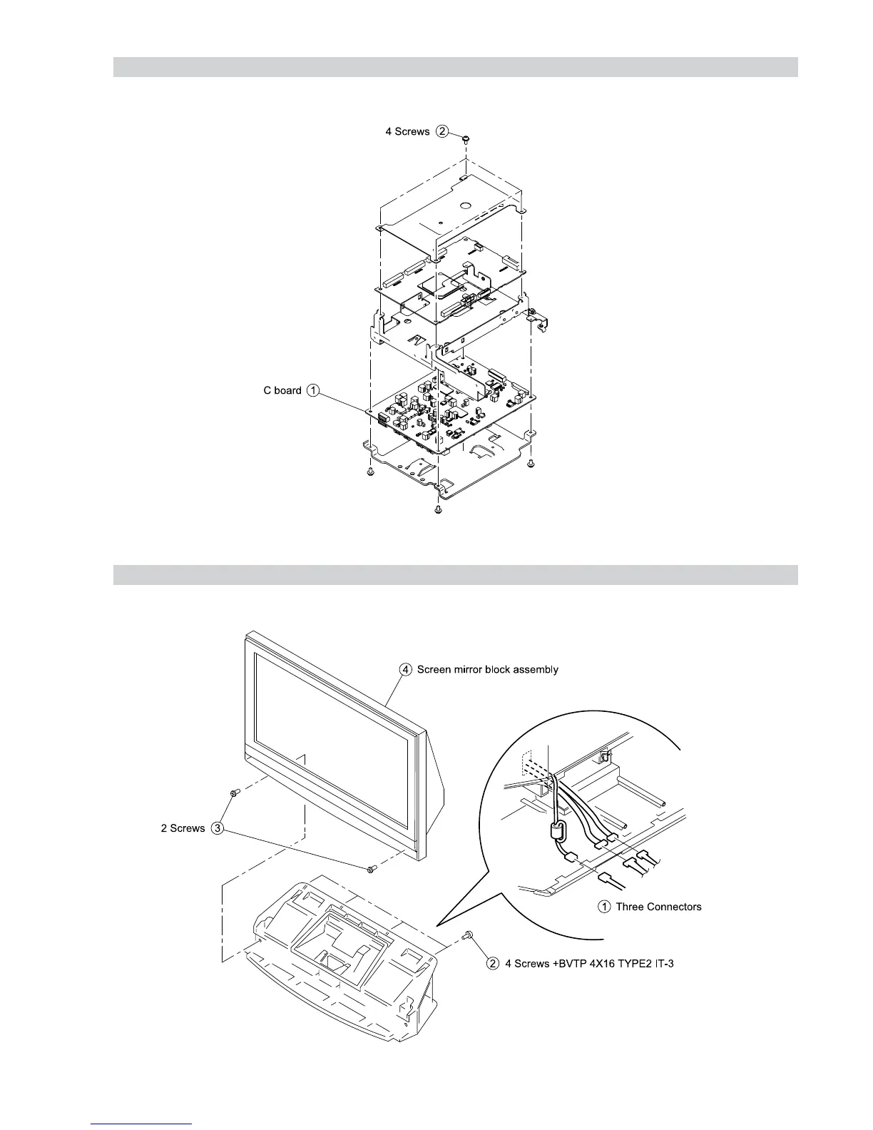 Sony KDF-E42A11E - C Board Removal; Screen, Mirror Block Assembly Removal