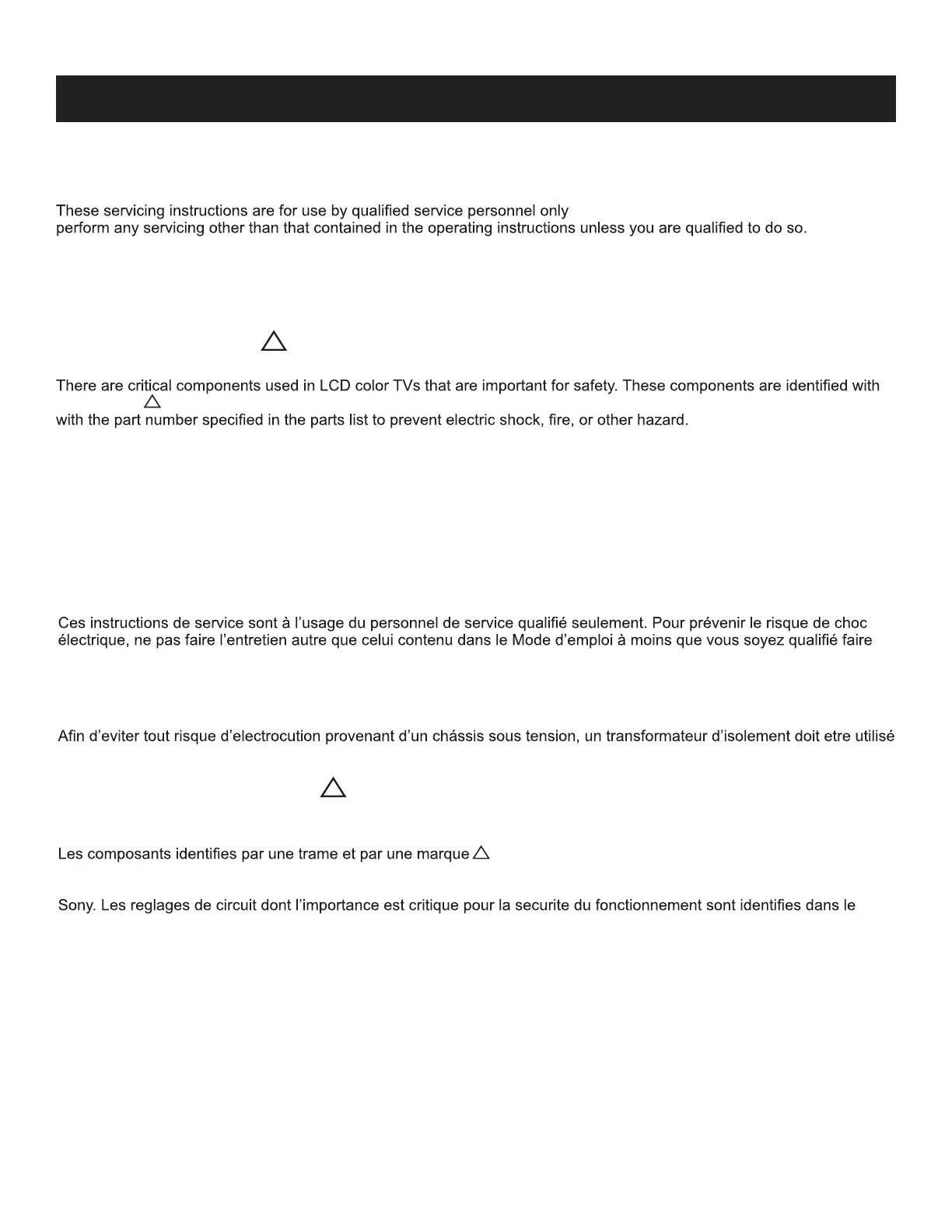 An isolation transformer should be used during any service to avoid possible shock hazard, in case of live chassis.