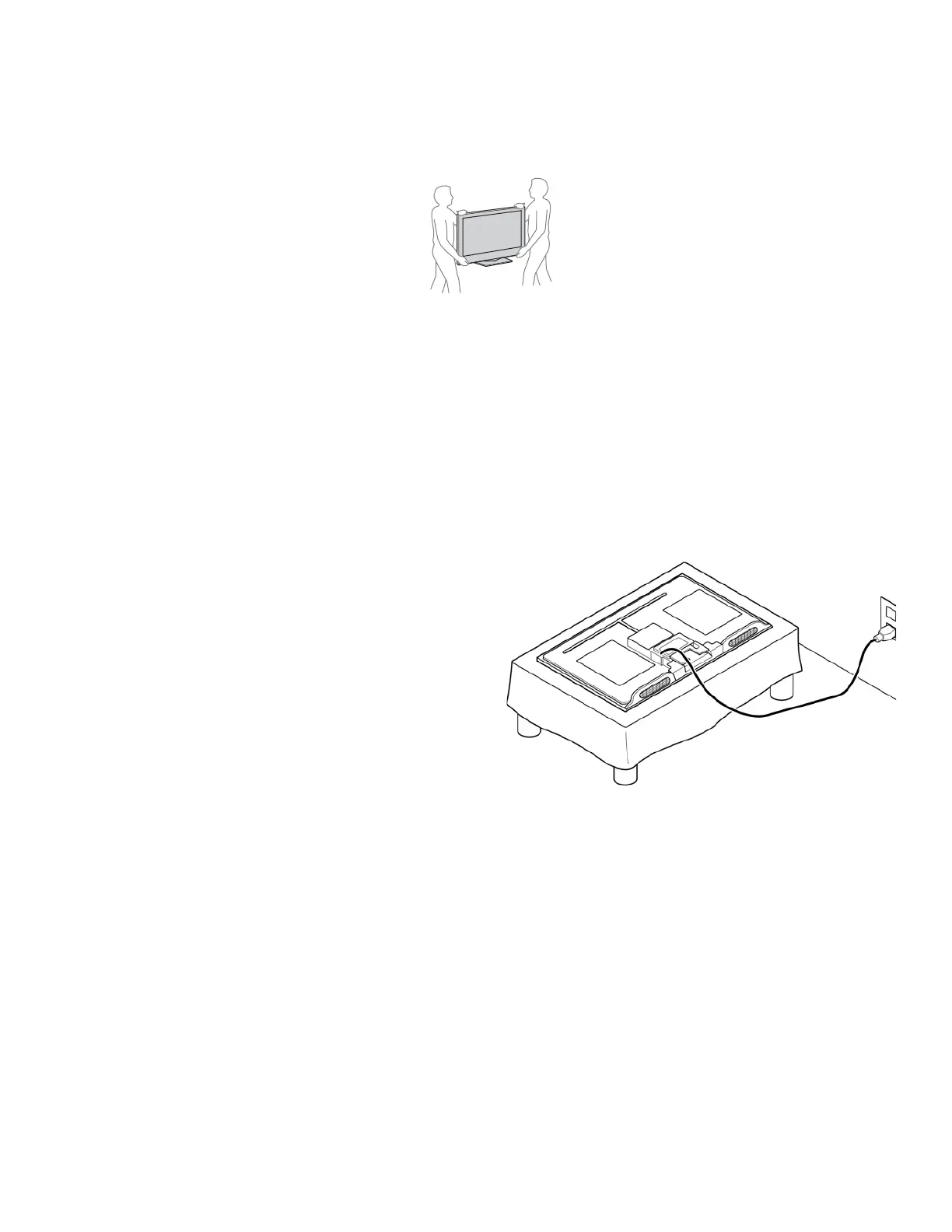 • Carry the TV with the adequate number of people; larger size TVs require two or more people.