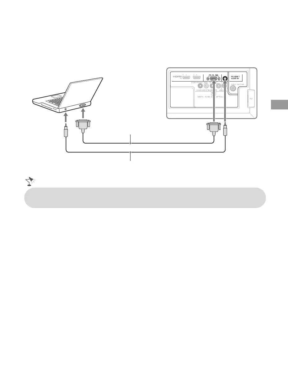 Use the TV as a monitor for your PC by connecting an HD15-HD15 cable connection as shown