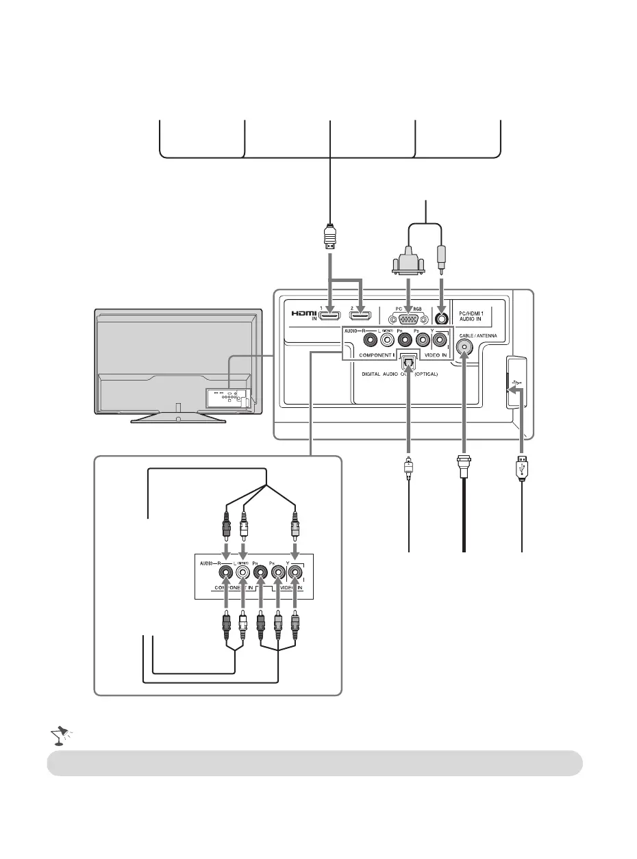 Refer to the Quick Setup Guide (supplied) when connecting other equipment to your TV.