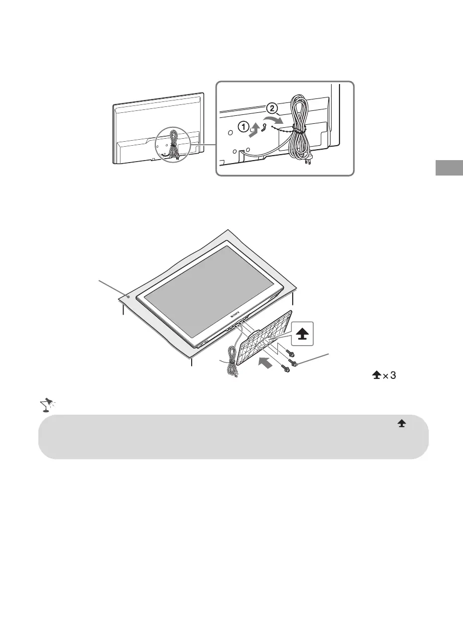 • To detach the Table-Top Stand from the TV, remove the three screws guided by the allow mark