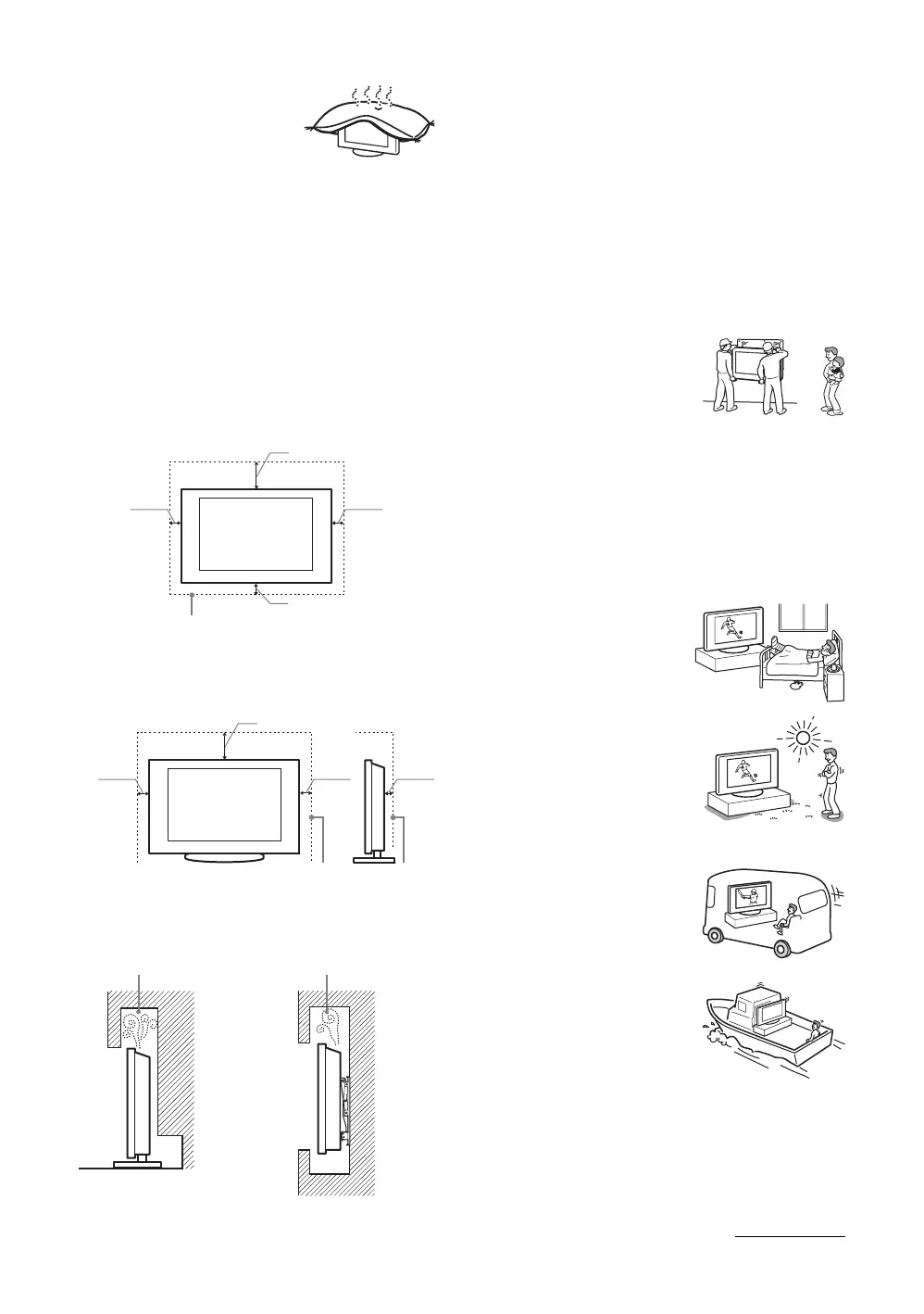 • Unless proper ventilation is provided, the TV set may