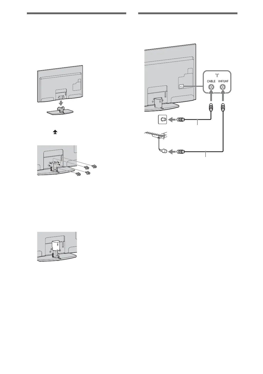 Sony KDL-60EX700 - 設定; 安裝桌面底座 (Kdl-60 Ex700 除外; 連接天線; 有線電視; 錄影機