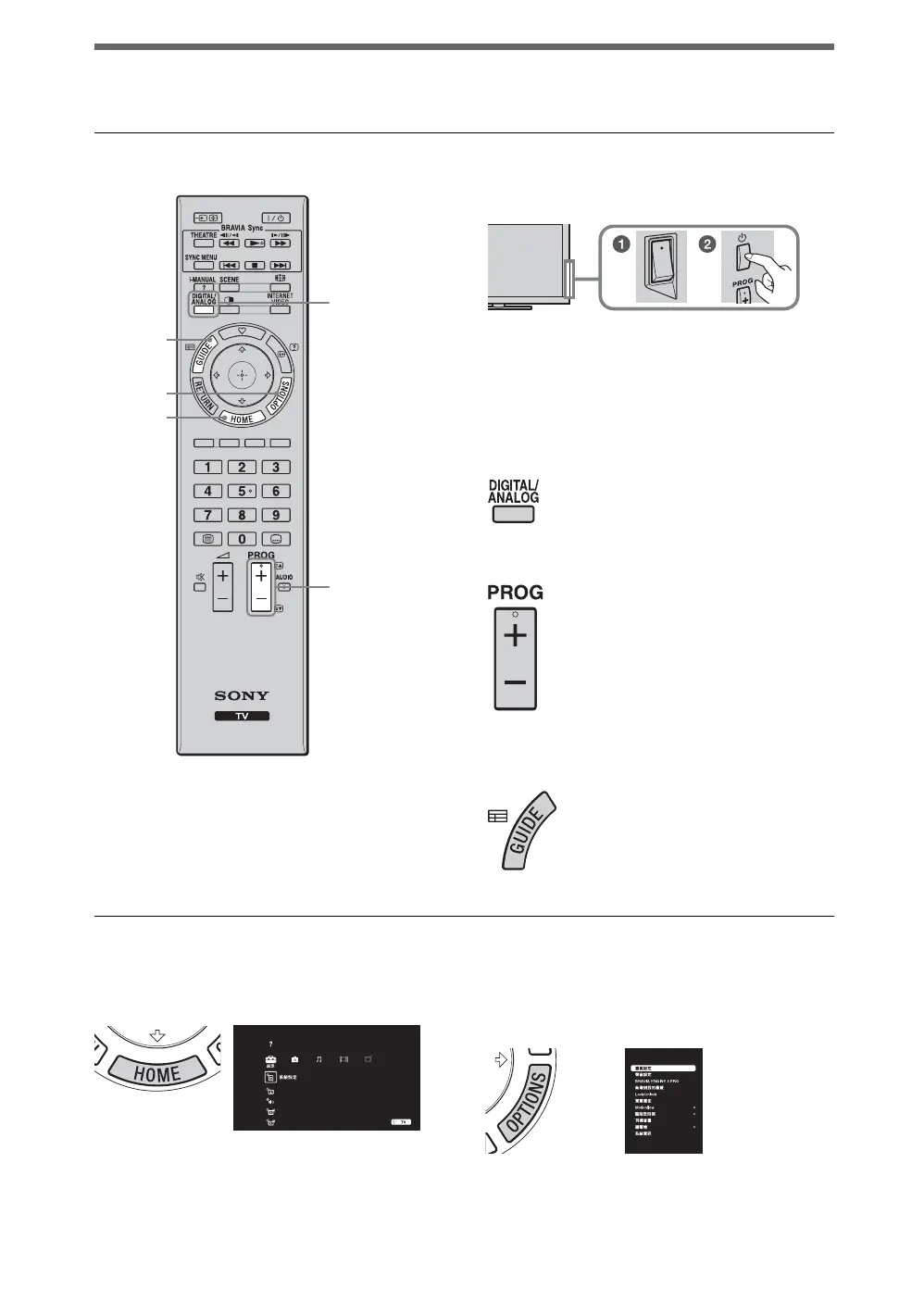 Sony KDL-60EX700 - 觀賞電視; 觀賞節目; 使用電視功能