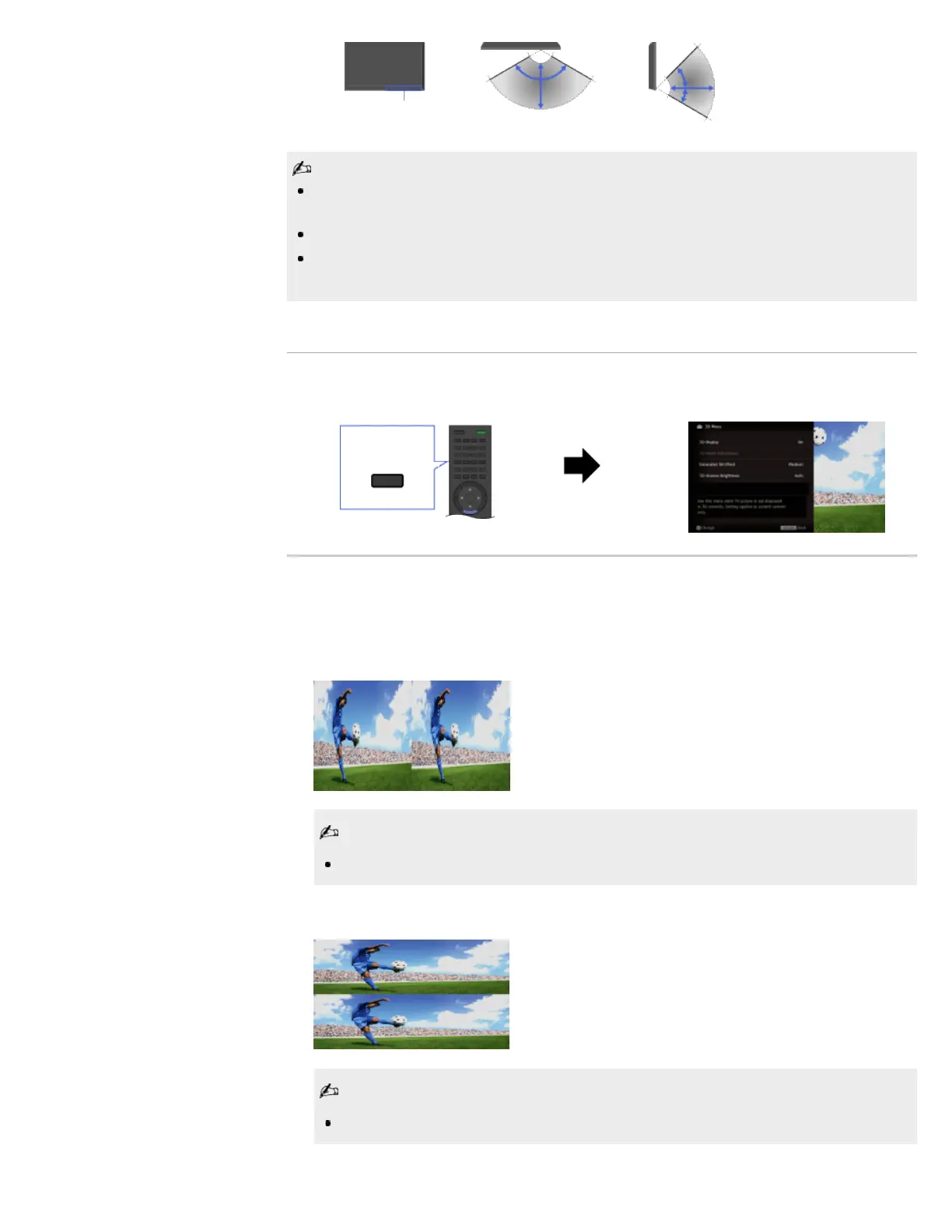 Press 3D, then select the desired setting → the desired option.