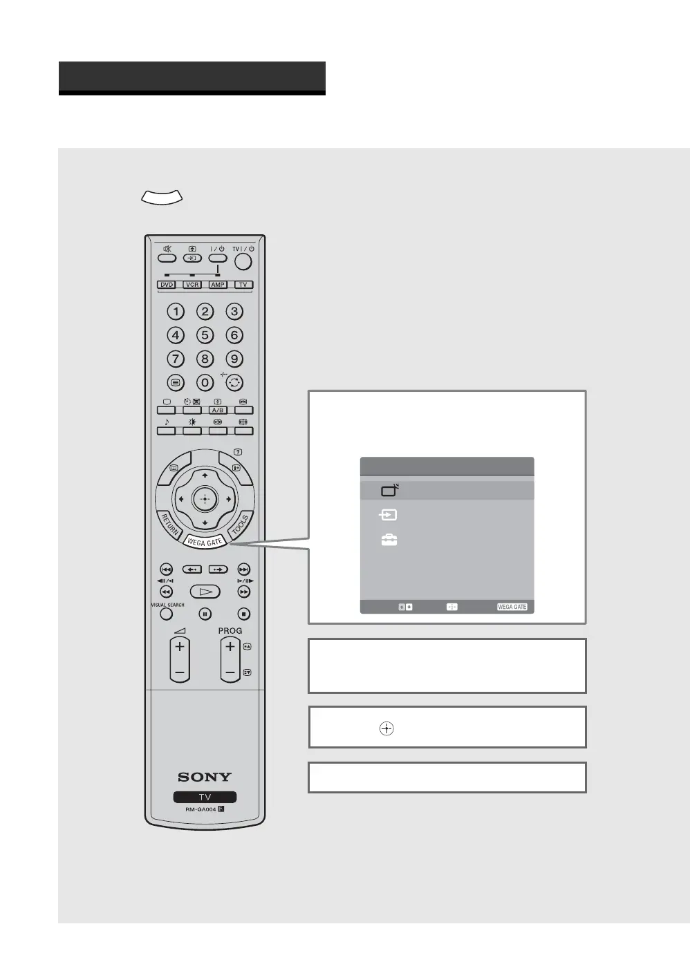 WEGA GATE provides one button access for controlling your TV. It enables you to perform a variety of tasks