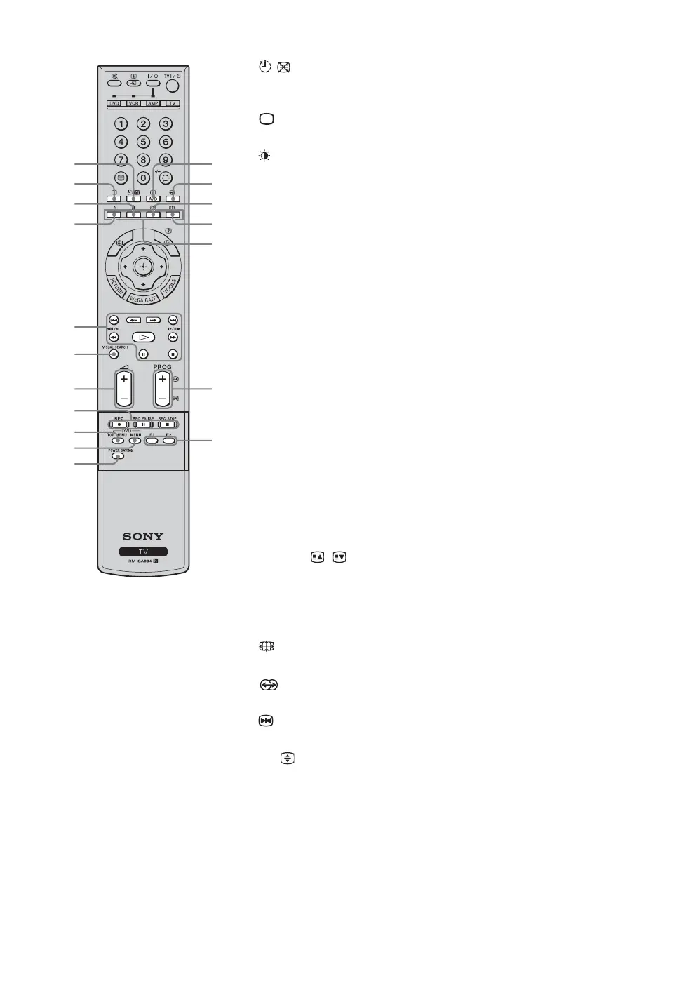 In TV mode (page 18): Selects the next (+) or previous (-) channel.