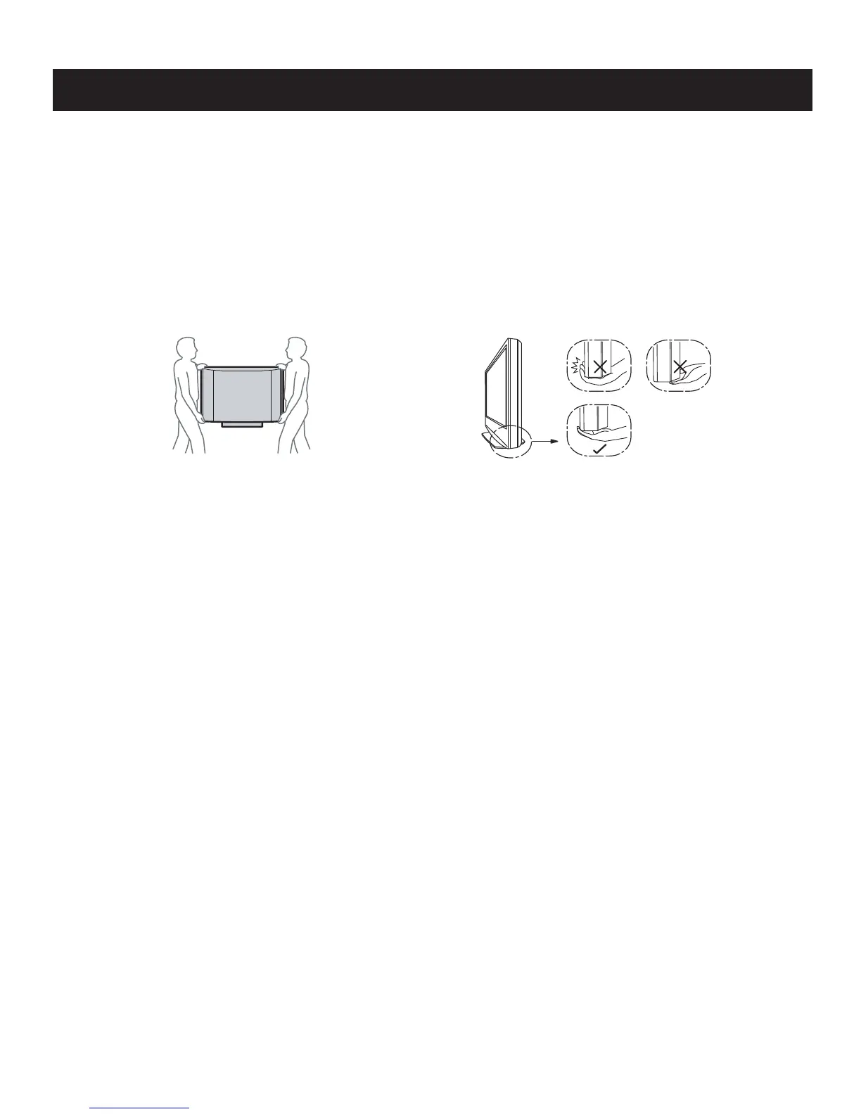 s When lifting or moving the TV, hold it firmly from the bottom. Place