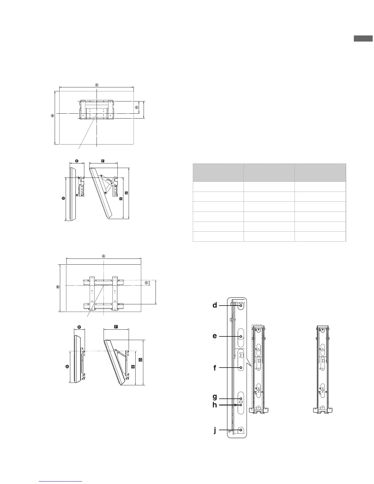 Línea central de la pantalla cuando se instala en la pared