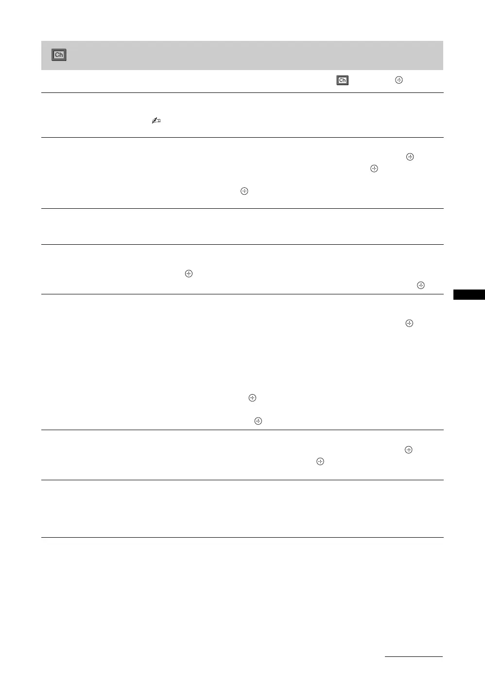 Press MENU and select “Settings”. Press F/f to select the “Channel Set-up” icon ( ), then press .