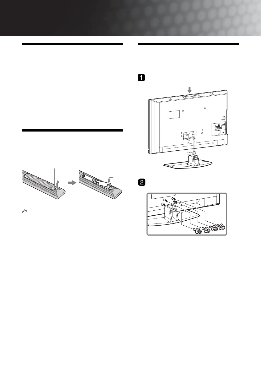 Sony KLV-46V400A - Start-up Guide; Checking Included Accessories; Remote Control Battery Installation; Attaching the Television Stand