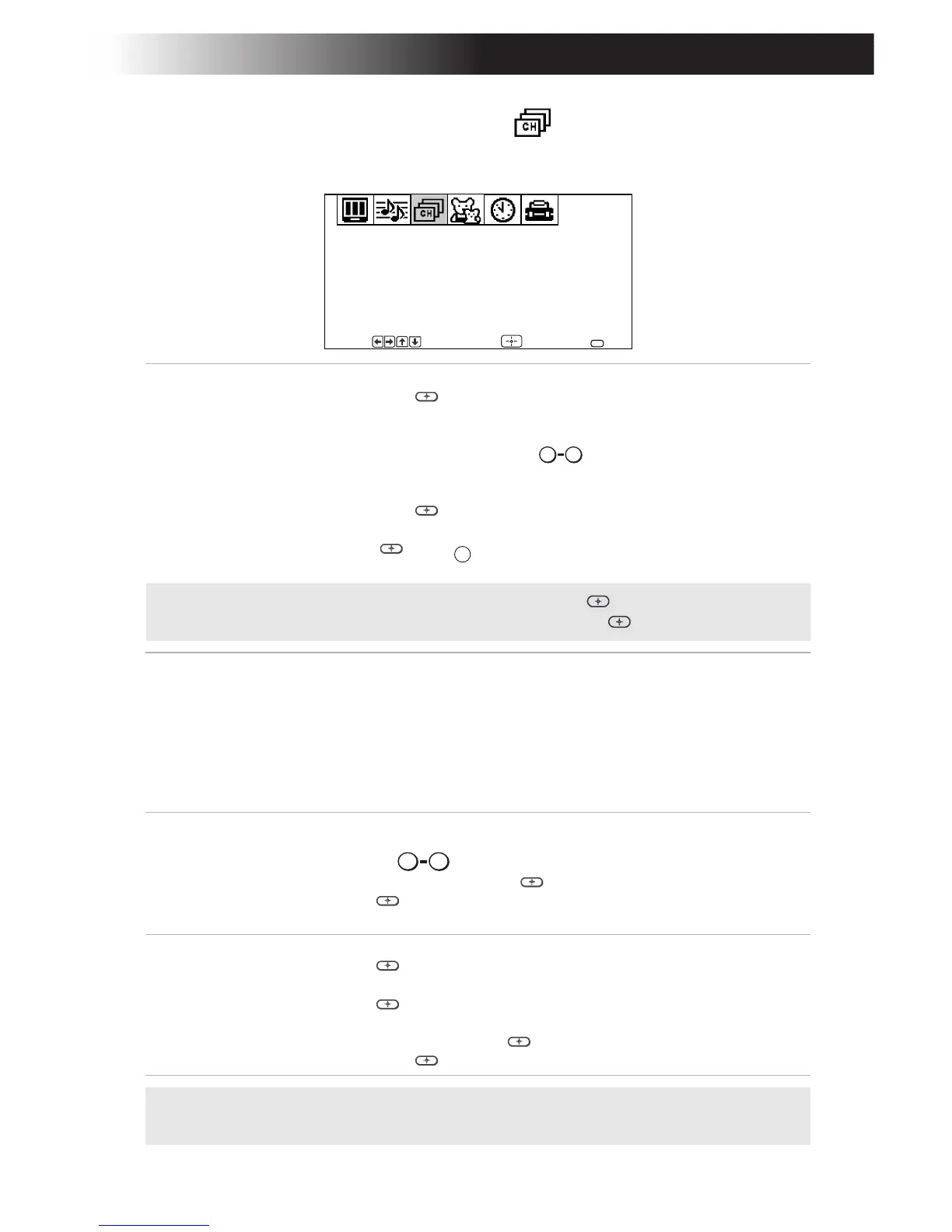 1 Use the buttons or the [CH+/-] buttons to select
