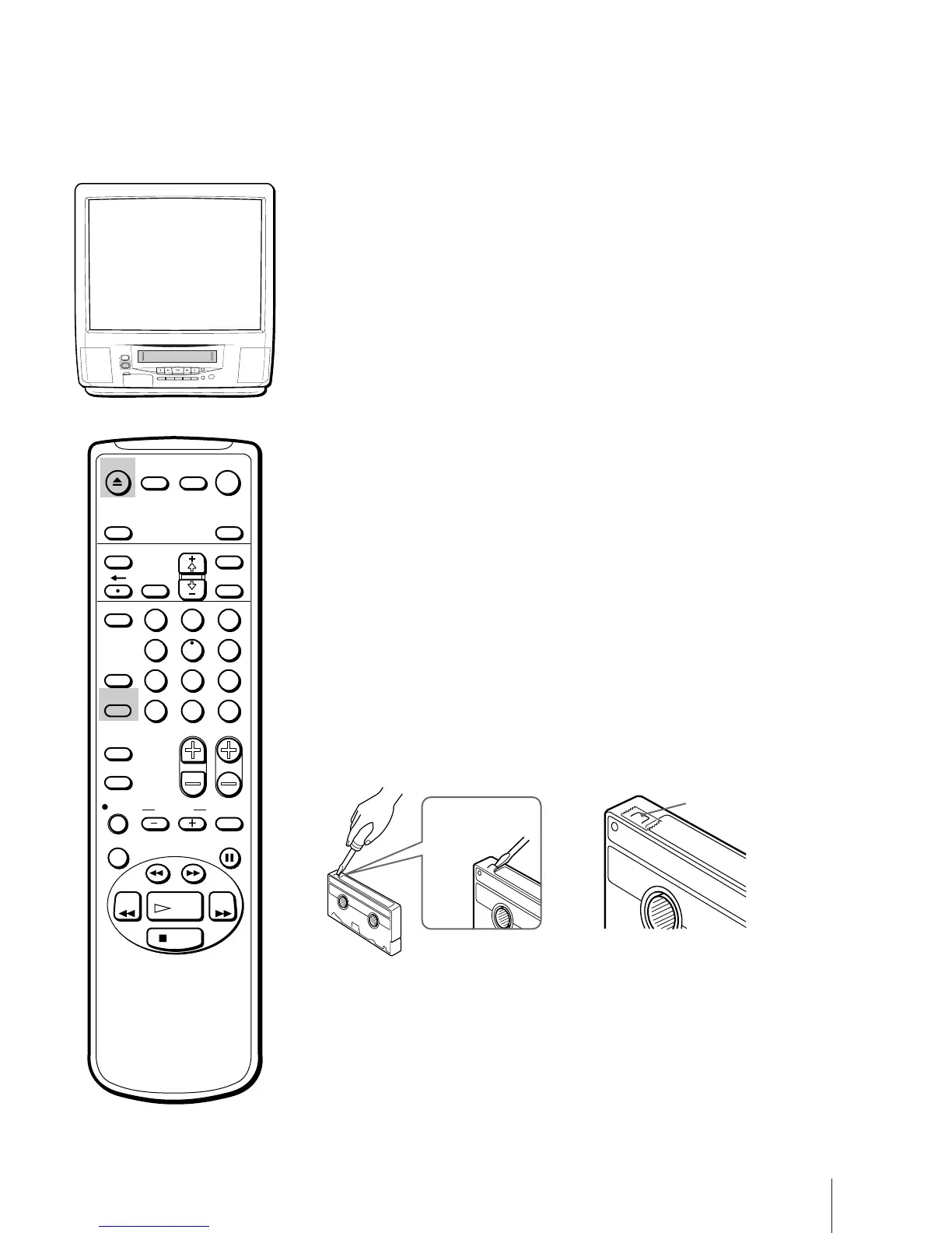 TV se enciende. Si inserta un cassette sin lengüeta de seguridad, la