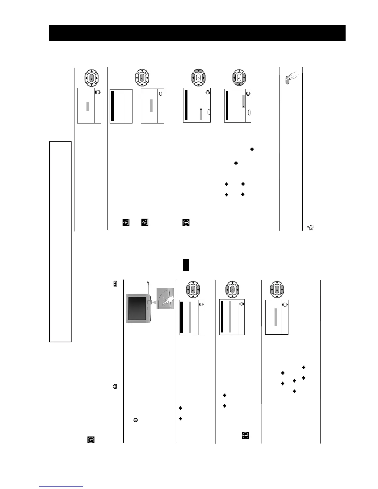 to operate the TV, 3) adjust the picture slant 4) search and store all available channels (TV