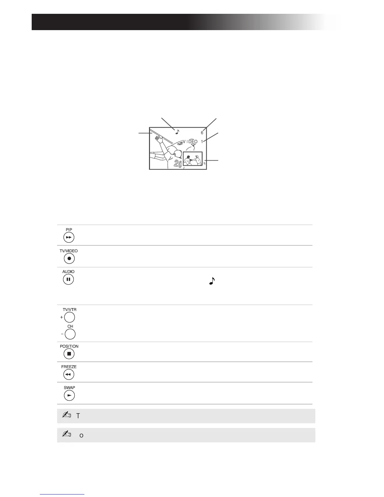 Press to turn the PIP feature on and off. Press repeatedly to change