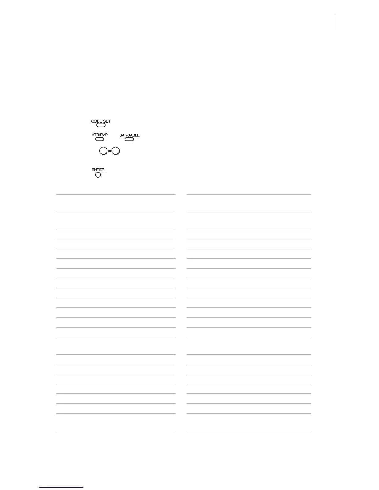 3 Use the buttons to key in the code number from the following