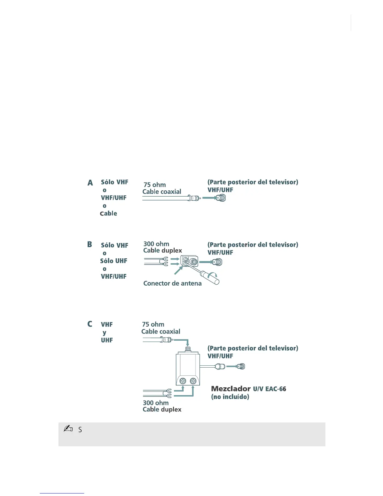 Si realiza la conexión a una antena interior o exterior, es posible que necesite