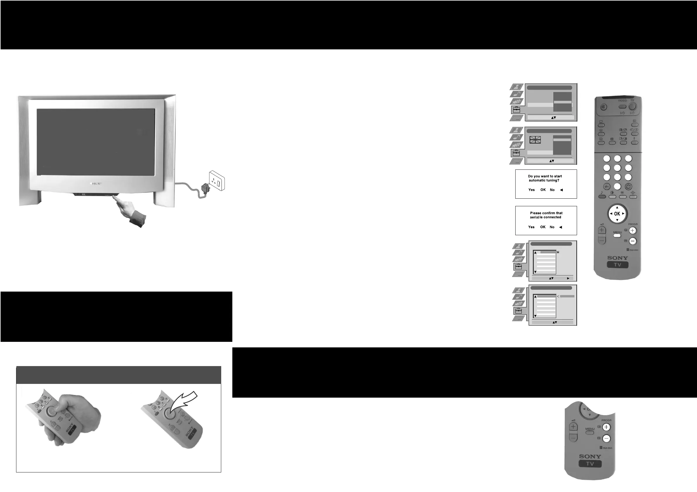 1. Connect the TV plug to a mains socket (220-240V AC), and switch on.