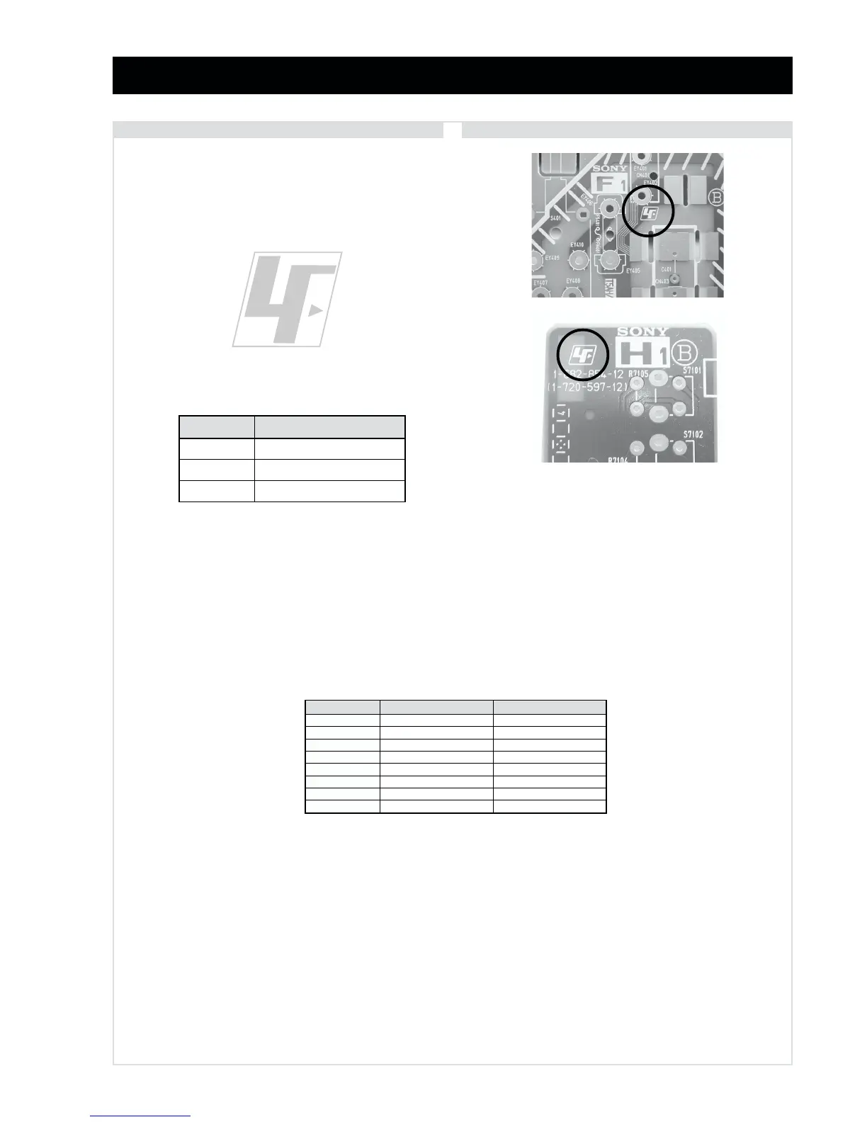 The circuit boards listed below [Table 1] used in these models