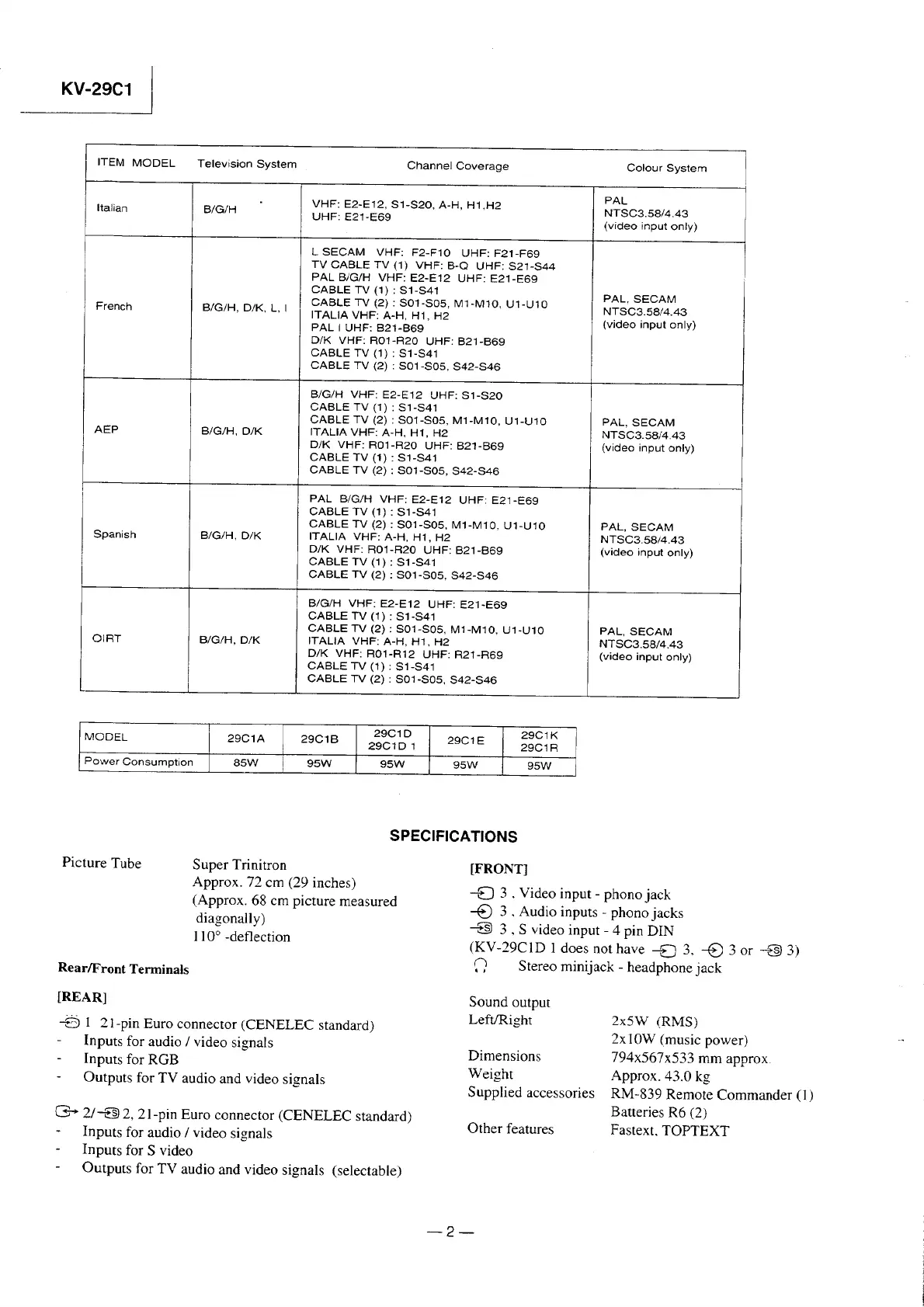 Sony KV-29C1A - Page 2